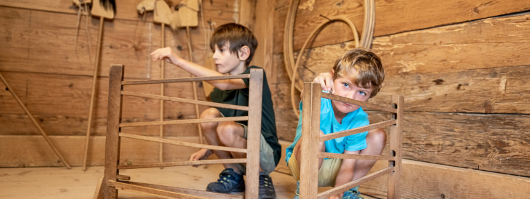 The historically furnished workshops also invite you to explore them. Using authentic tools, the craftsmen demonstrate old craftsmanship: Carving, basket making, spinning and weaving, lace-making, forging, cheese making and baking.