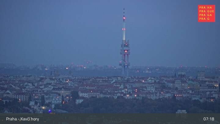 The webcam is located in Prague near the Kavčí hory park. You can see the station Děkanka.