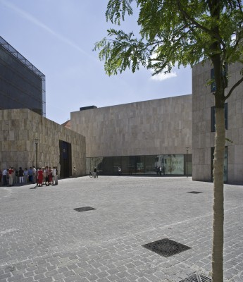 The front of the museum is formed by a foyer that is glazed all around and thus transparent, thus presenting itself to the outside as a public space. Here you will find the information area with cash desk, the museum bookshop and a café. On the first and second floors there are two temporary exhibition areas as well as study and learning areas.