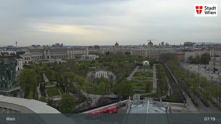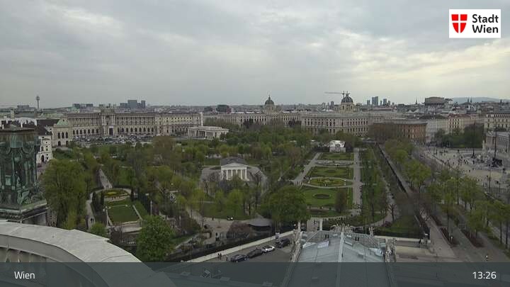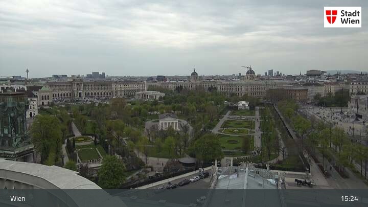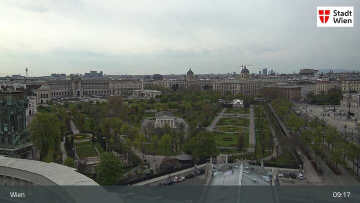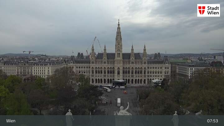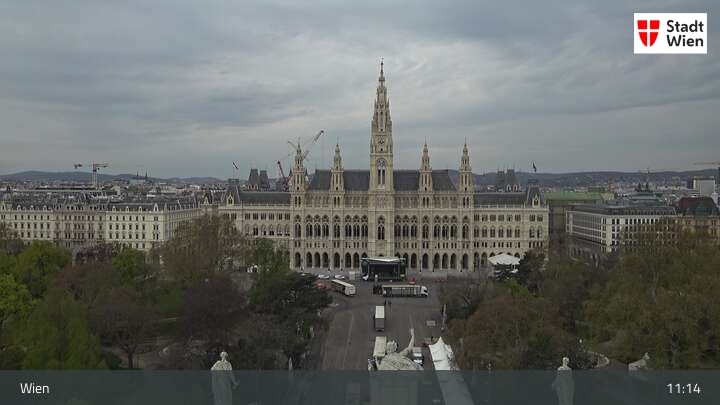 Looking over city centre of Vienna, this webcam shows the Burgtheater as well as the town hall.