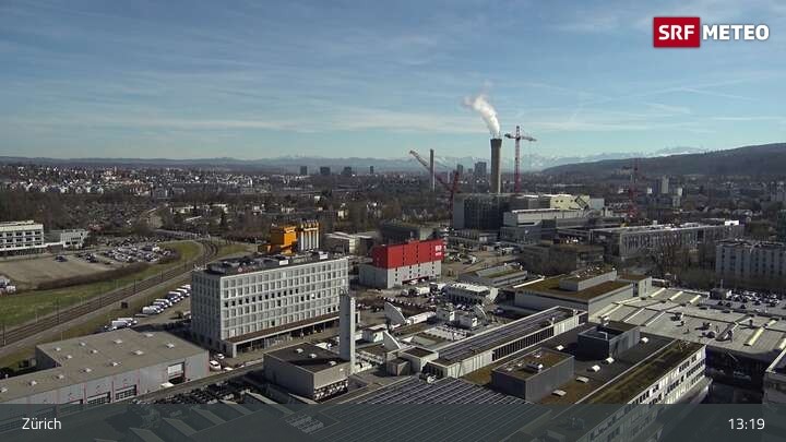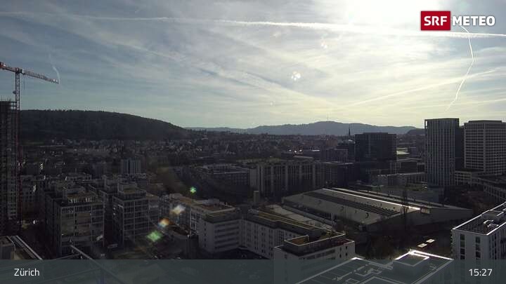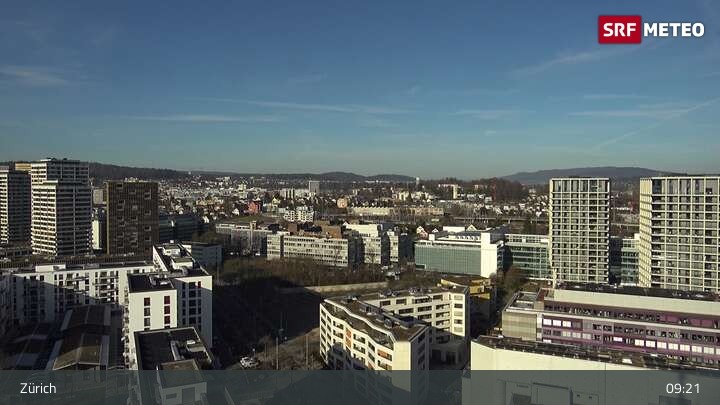 Have a look over the city Zürich in Switzerland. The webcam is positioned at the building of the SRF.