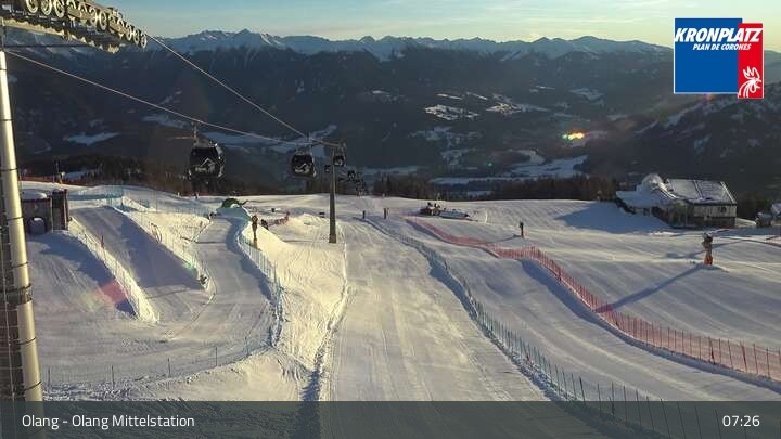 Here you can see the mid-station of gondola Olang as well as the surrounding mountain-scape of Kronplatz.