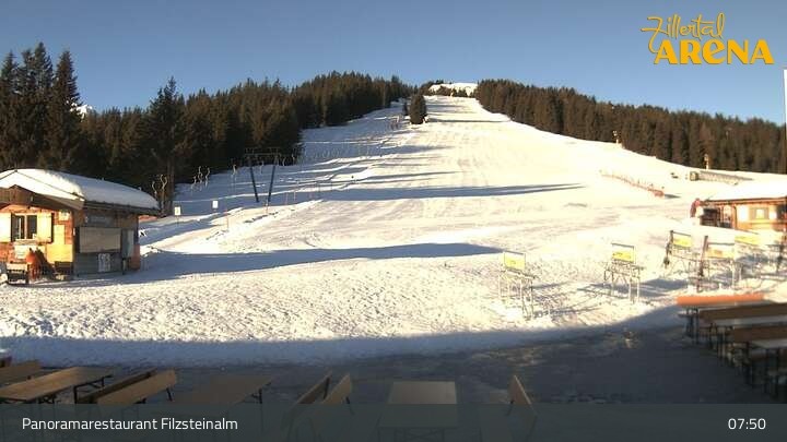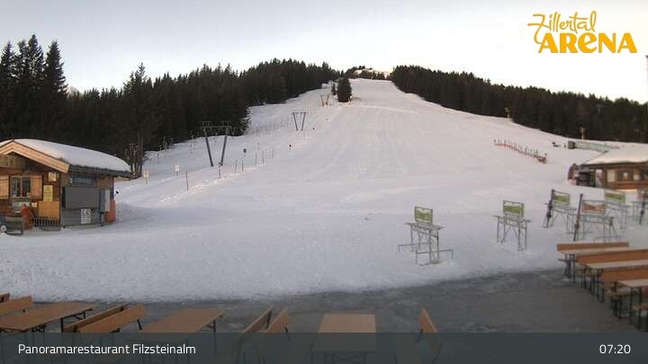 This webcam shows the panoramic restaurant Filzsteinalm on Gerlosplatte in Hochkrimml.