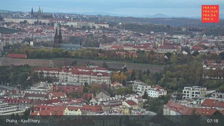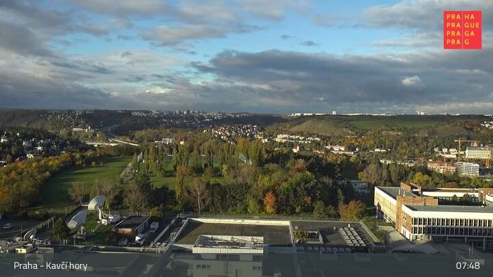 The webcam is located in Prague near the Kavčí hory park. You can see the station Děkanka.