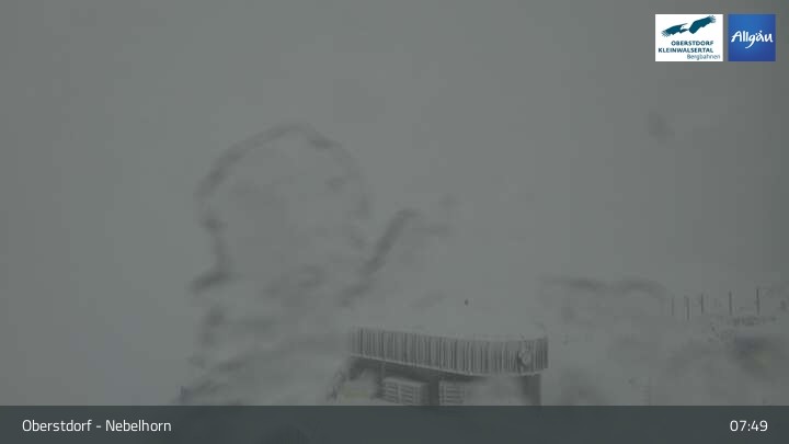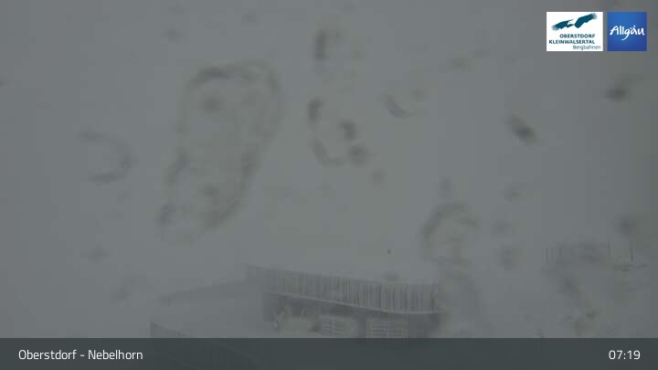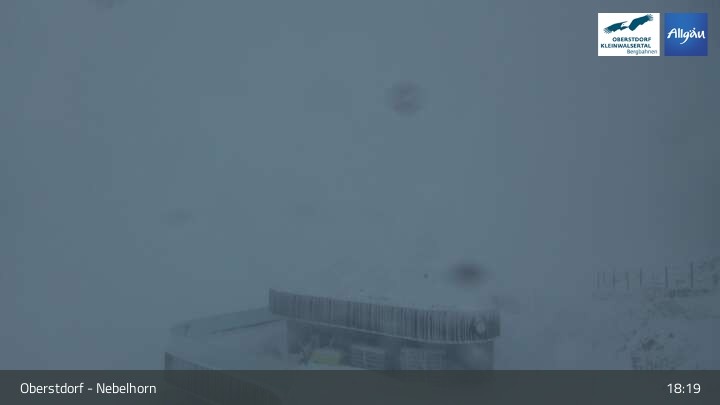 The live cam on Nebelhorn (Oberstdorf) shows the mountain panorama and the slopes below the peak.