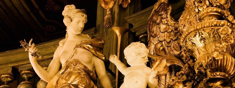 The stage portal is framed by columns and numerous sculptures and Baroque paintings adorn the impressive interior of the opera house. From 2013 to 2018, the Logenhaus was lavishly restored, preserving the ephemeral illusionary art of the Baroque era.