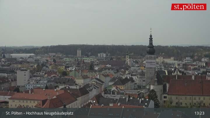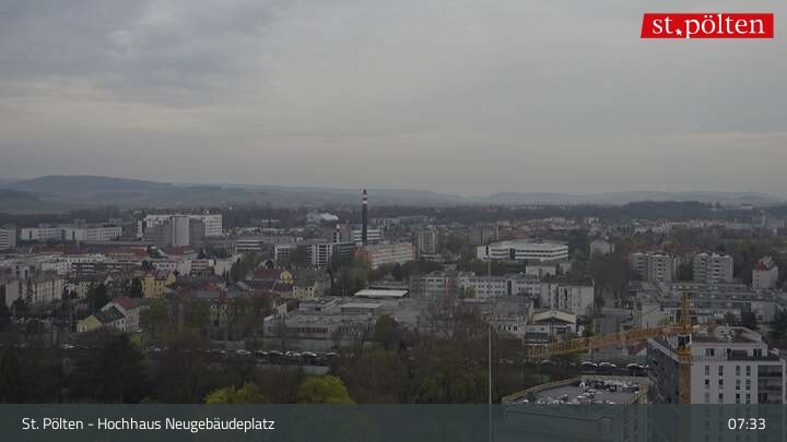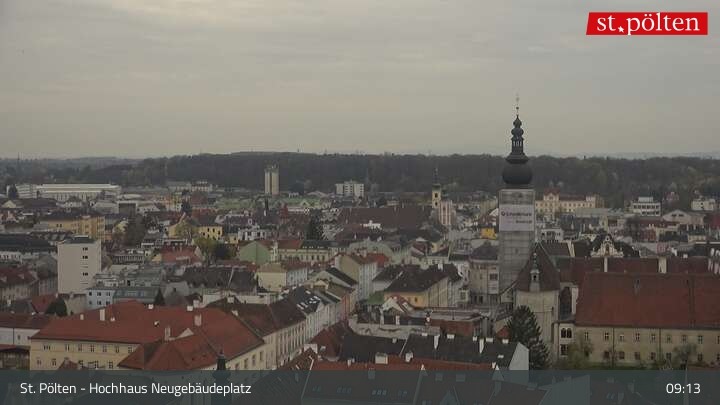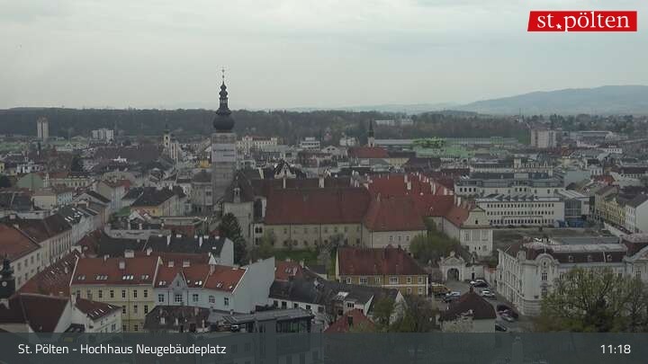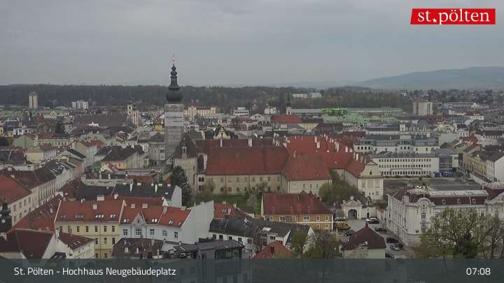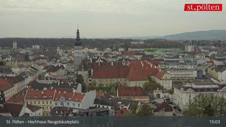 The webcam is located in St. Pölten on the roof of the high-rise building at Neugebäudeplatz and looks over the capital of Lower Austria. Among other things, you can see the building of the provincial government and the cathedral.
