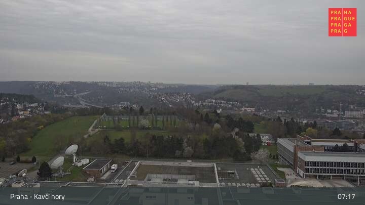 The webcam is located in Prague near the Kavčí hory park. You can see the station Děkanka.