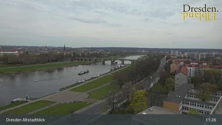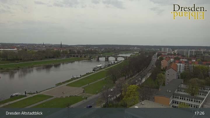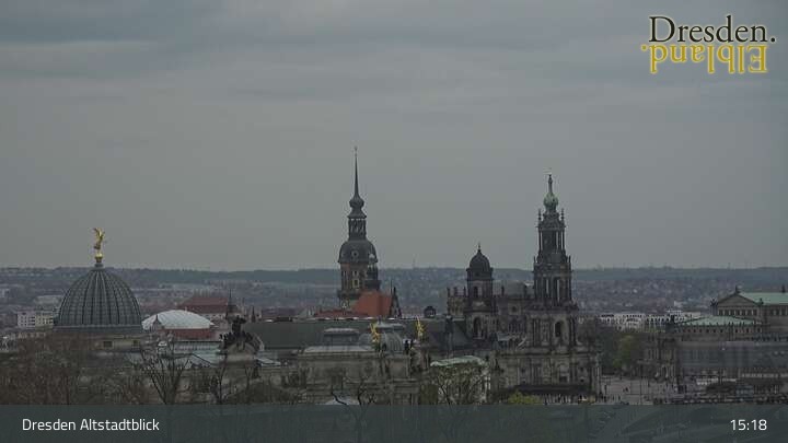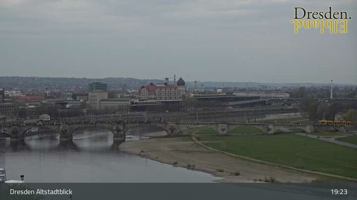 The camera is located at the Hotel am Terrassenufer in Dresden and looks out over the Old Town and the Elbe River.
