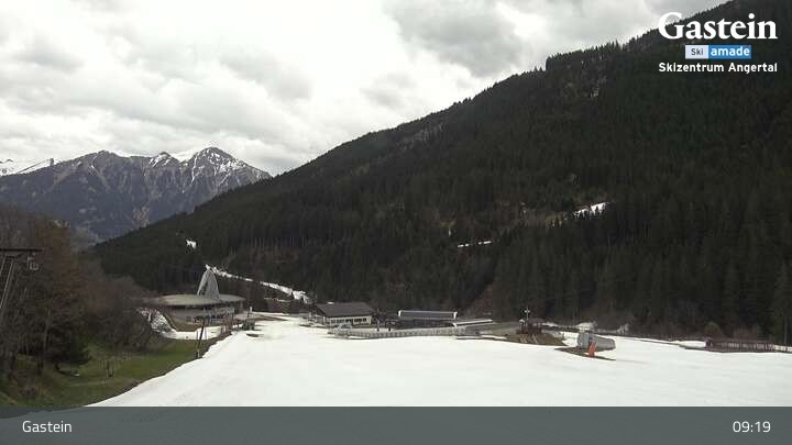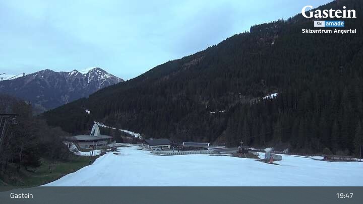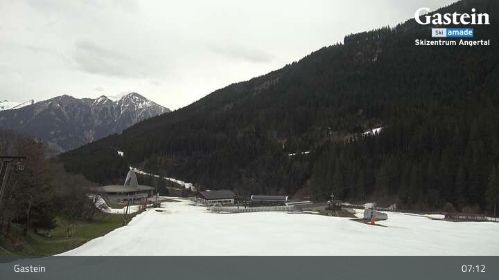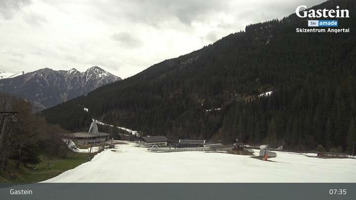 The webcam looks upon ski centre Angertal in the Gastein valley.