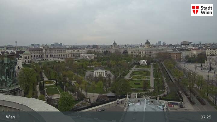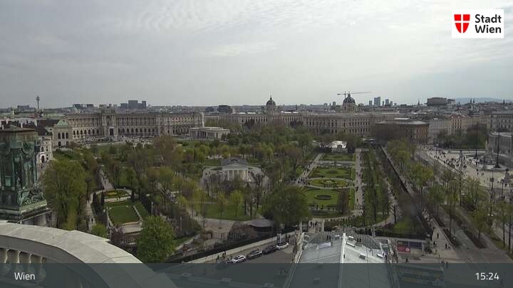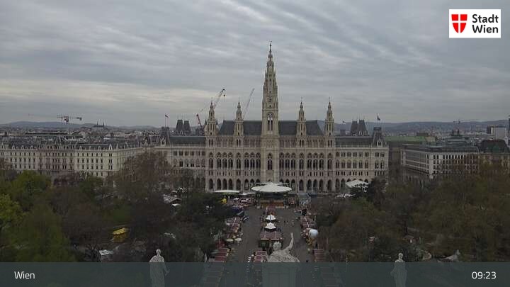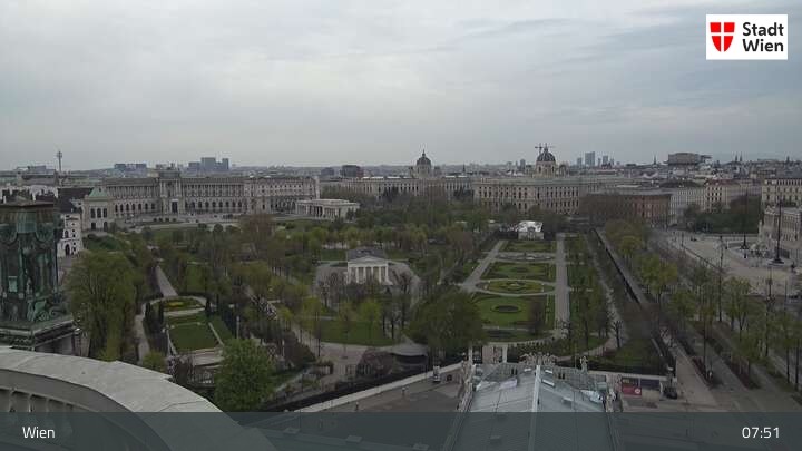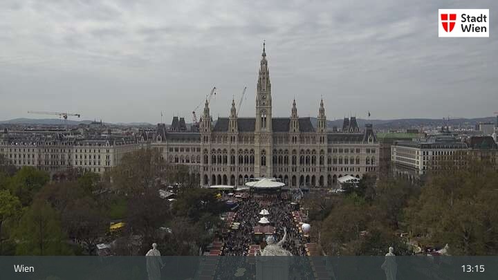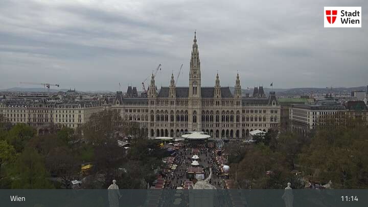 Looking over city centre of Vienna, this webcam shows the Burgtheater as well as the town hall.