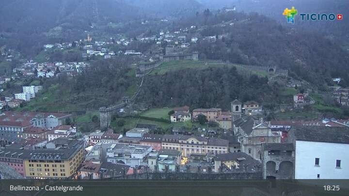This webcam looks upon Castelgrande castle in Bellinzona, capital of the Swiss canton of Tessin. Since the year 2000, it is an official UNESCO World Heritage Site.