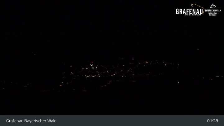 Enjoy the view of the climatic health resort Grafenau in the Bavarian Forest. The camera is located south of the town and looks north over the town to the Bavarian Forest National Park.