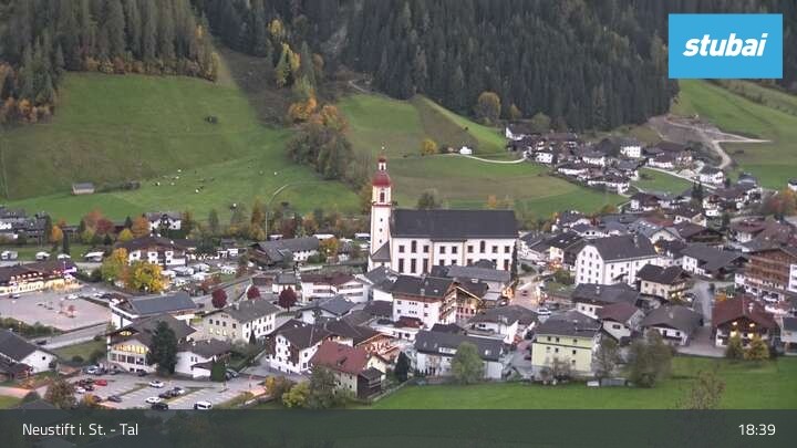 The webcam looks towards the village of Neustift im Stubaital (Stubai valley).