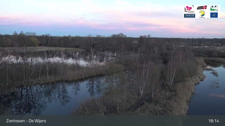 View over the lakes of De Wijers at the Belgian town of Zonhoven.