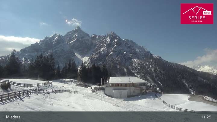 The webcam offers the view from the mountain station Koppeneck towards the mountain of Mieders, the Serles. You can also see the mountain restaurant Koppeneck with children's playground and the reservoir.