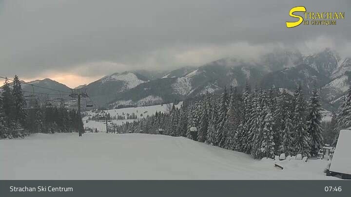 The webcam is located in the ski resort Strachan in Ždiar and shows the base station of the 4-seater chairlift.