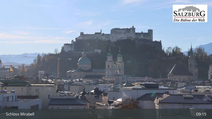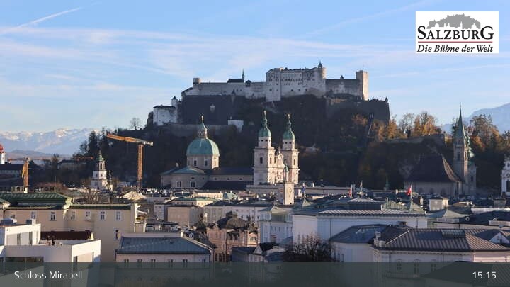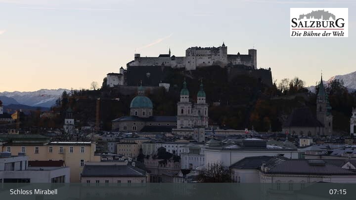 Your view from Mirabellgarten and castle Hohensalzburg in Salzburg, Austria.