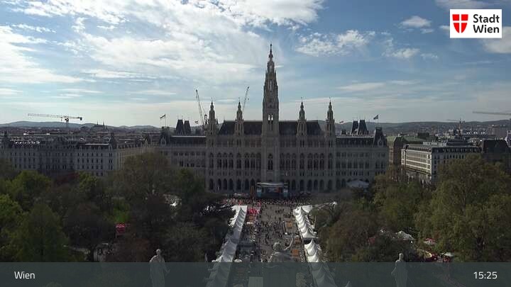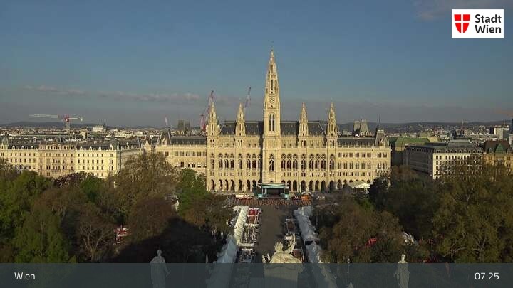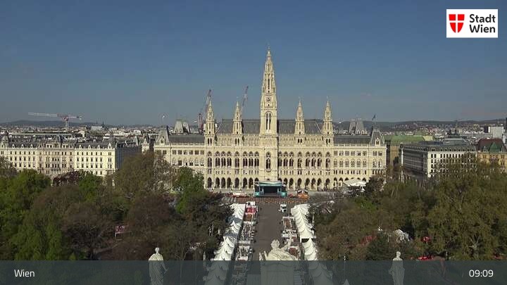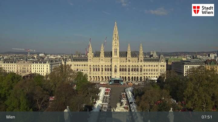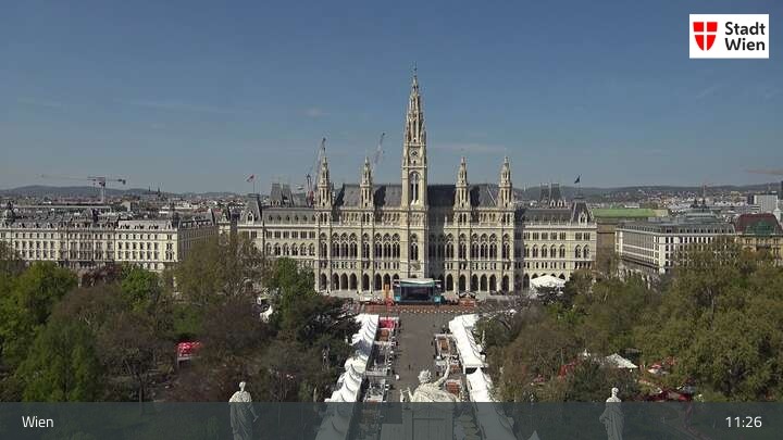 Looking over city centre of Vienna, this webcam shows the Burgtheater as well as the town hall.
