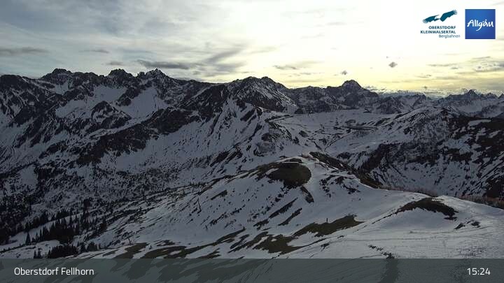 The webcam shows the scenery surrounding the top station of Fellhornbahn in Oberstdorf in Bavaria.