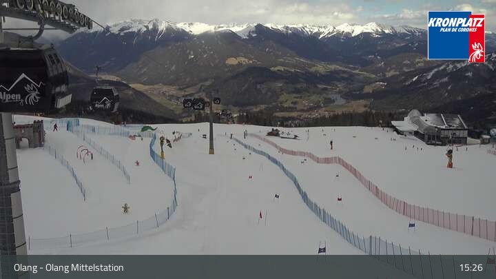 Here you can see the mid-station of gondola Olang as well as the surrounding mountain-scape of Kronplatz.