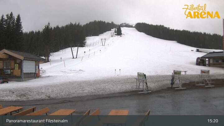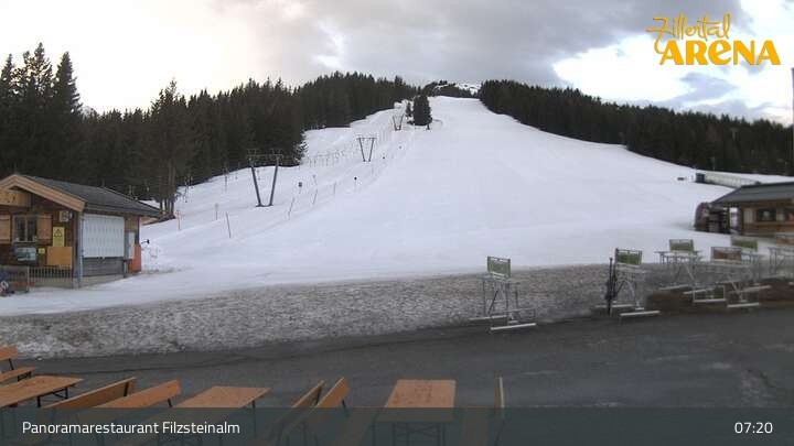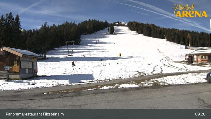This webcam shows the panoramic restaurant Filzsteinalm on Gerlosplatte in Hochkrimml.
