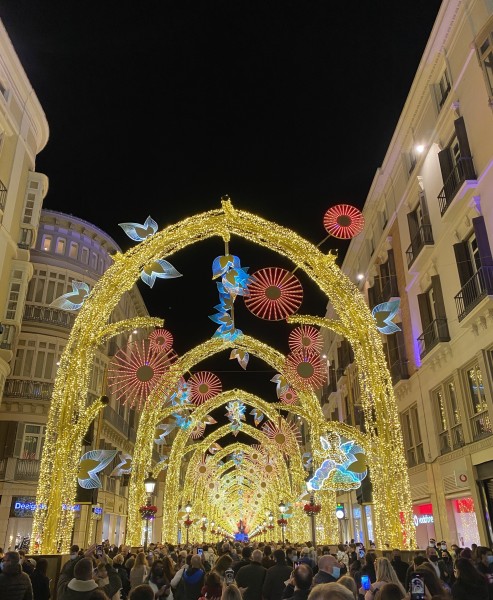 Several times a night, usually around 6:30 PM, 8:30 PM, and 10:00 PM, a synchronised light and music show takes place, with the installation dancing along to well-known Christmas songs. It's not uncommon to see the crowd singing along, clapping, or even dancing in the street, turning the Calle Larios into something that feels like one big shared Christmas celebration under the open sky. Each show only lasts a few minutes but is repeated throughout the evening. On special nights such as Christmas Eve and New Year's Eve, the lights stay on until 6:00 AM.