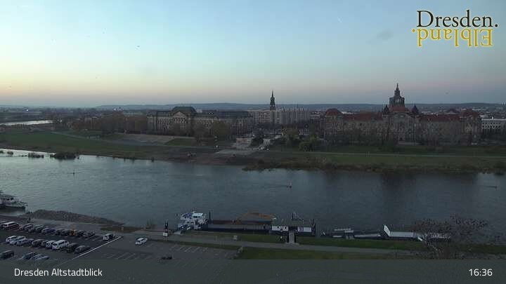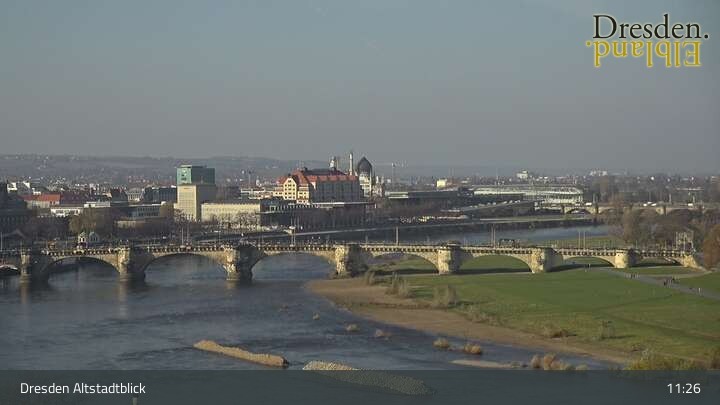 The camera is located at the Hotel am Terrassenufer in Dresden and looks out over the Old Town and the Elbe River.