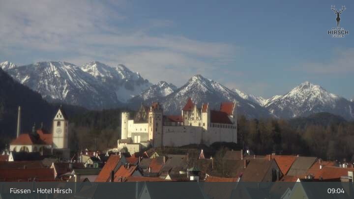 View of High Palace in Füssen. Webcam is located at Hotel Hirsch.