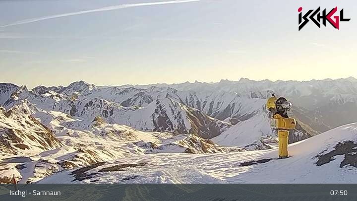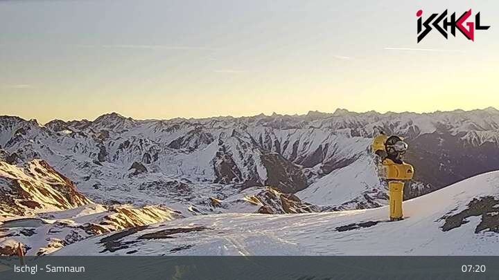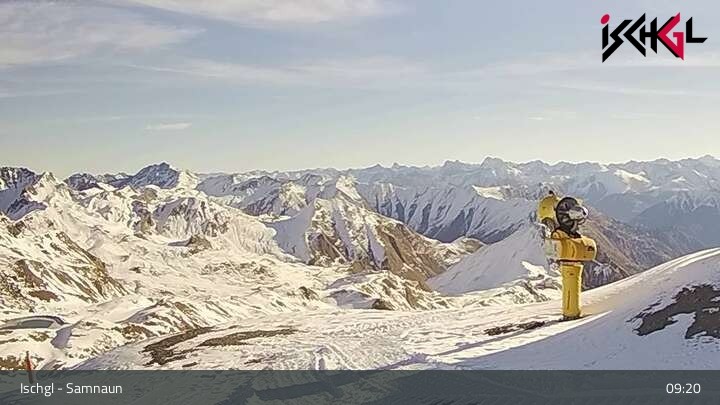 View from Greitspitze mountain over the surrounding Alpine landscape.