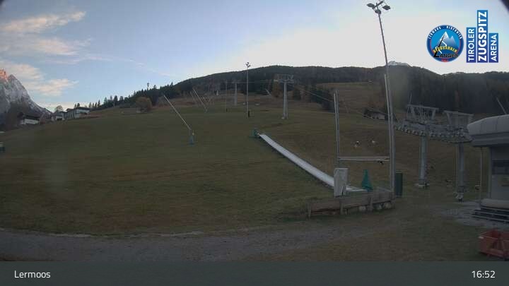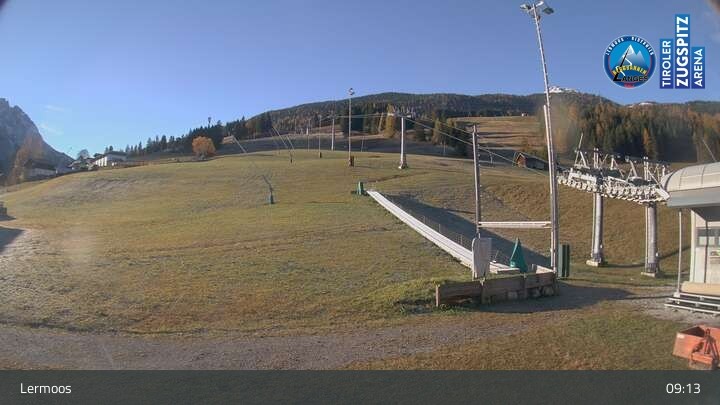 View over the base area of Familyjet in Lermoos, Tyrol.