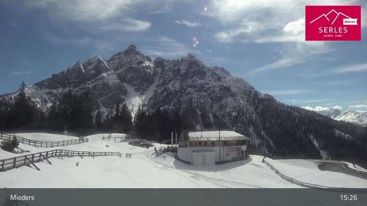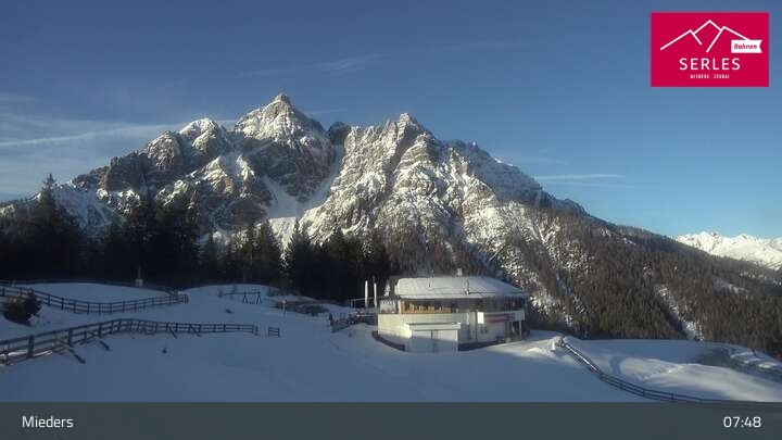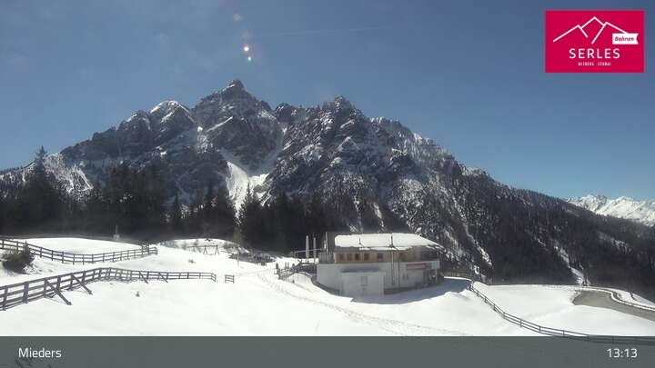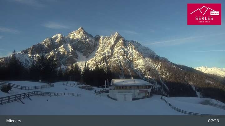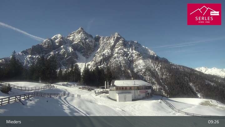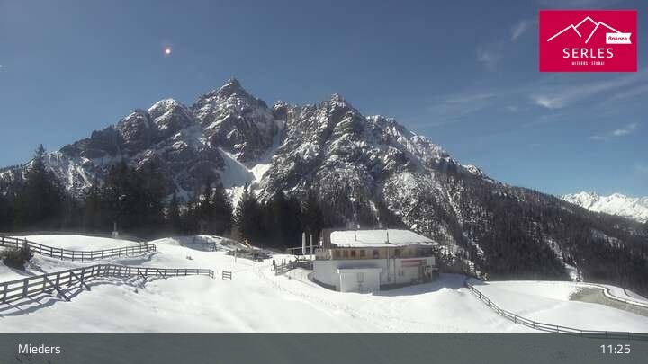 The webcam offers the view from the mountain station Koppeneck towards the mountain of Mieders, the Serles. You can also see the mountain restaurant Koppeneck with children's playground and the reservoir.