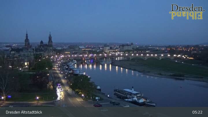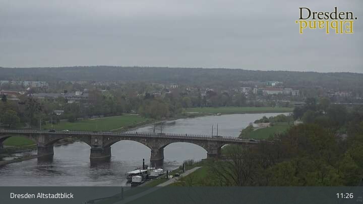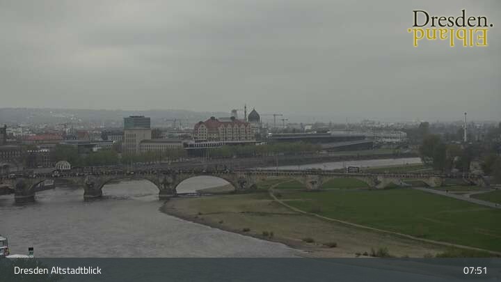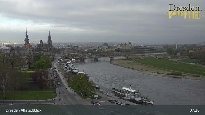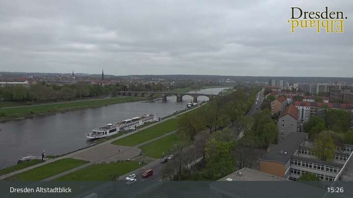 The camera is located at the Hotel am Terrassenufer in Dresden and looks out over the Old Town and the Elbe River.