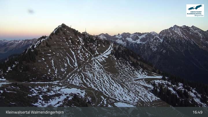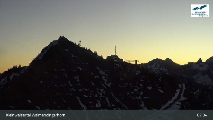 You can see the summit of the Walmendingerhorn and the upper station of its aerial tramway in Kleinwalsertal.