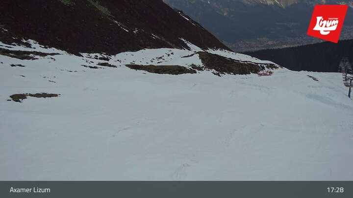 The webcam is located at the top station of the Karleiten chairlift in Axamer Lizum.