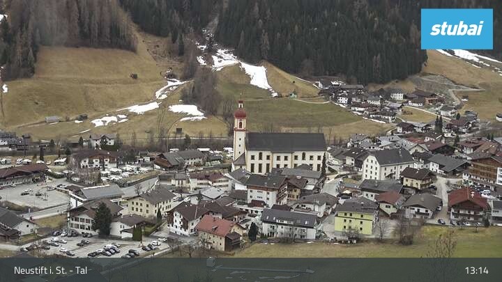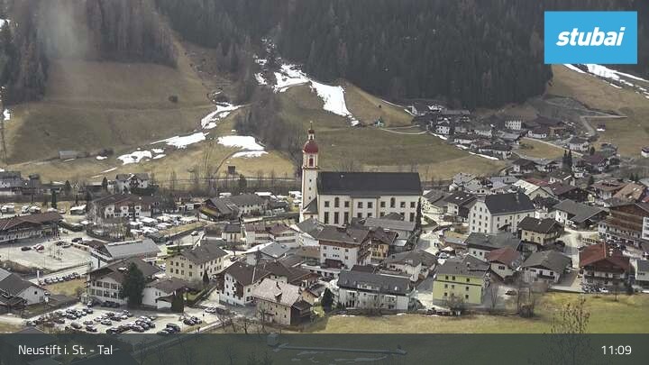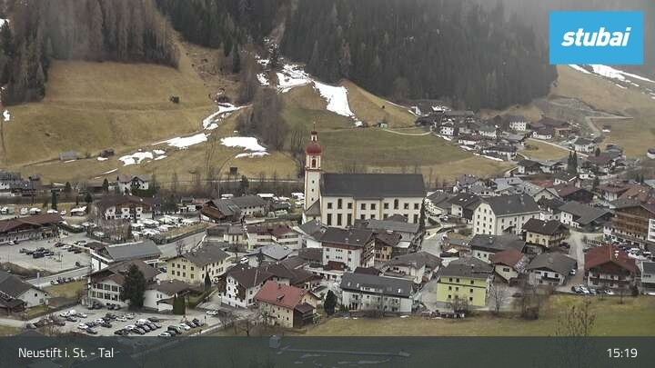 The webcam looks towards the village of Neustift im Stubaital (Stubai valley).