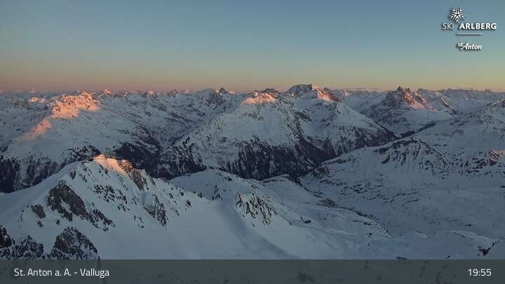 This webcam shows you the view at Valluga mountain (2.809 meters) in the western Lechtal Alps.