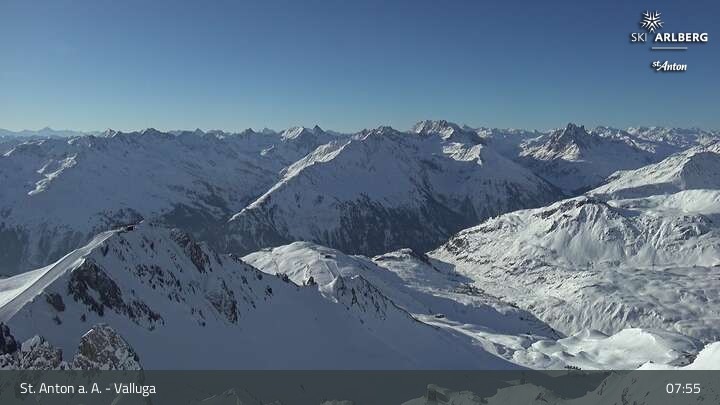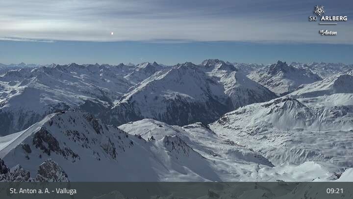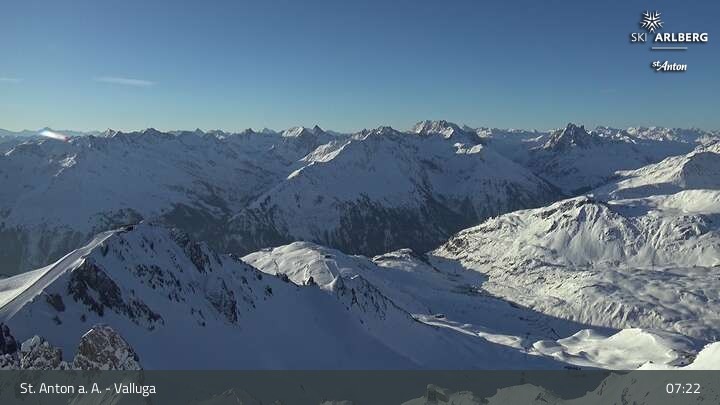 This webcam shows you the view at Valluga mountain (2.809 meters) in the western Lechtal Alps.