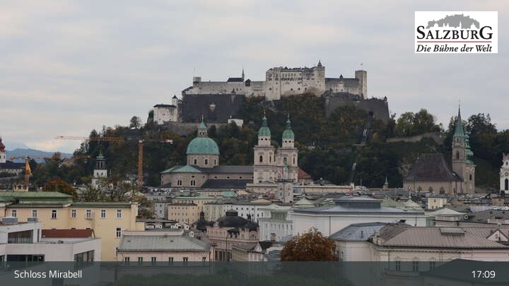 Your view from Mirabellgarten and castle Hohensalzburg in Salzburg, Austria.