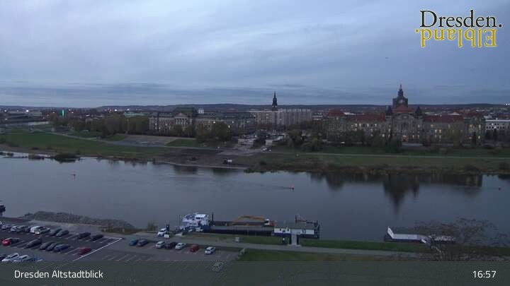 The camera is located at the Hotel am Terrassenufer in Dresden and looks out over the Old Town and the Elbe River.