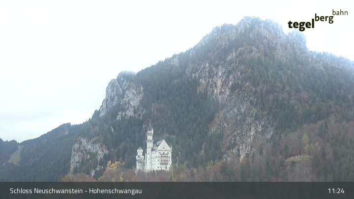 View from Hohenschwangau Castle. The webcam shows the Castle Neuschwanstein and the Museum of Bavarian Kings.