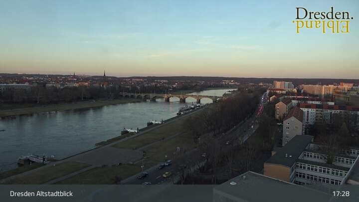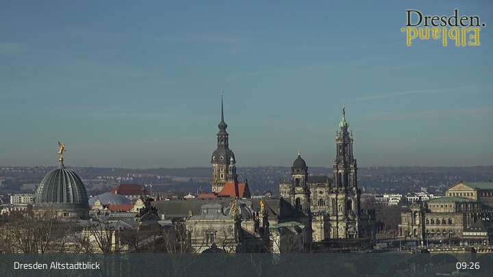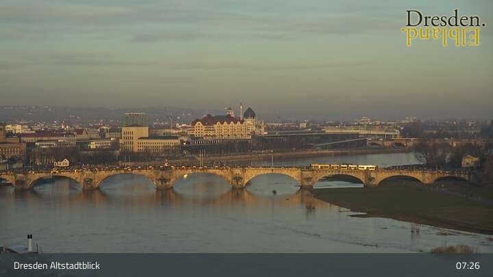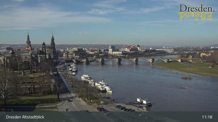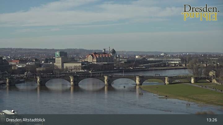 The camera is located at the Hotel am Terrassenufer in Dresden and looks out over the Old Town and the Elbe River.