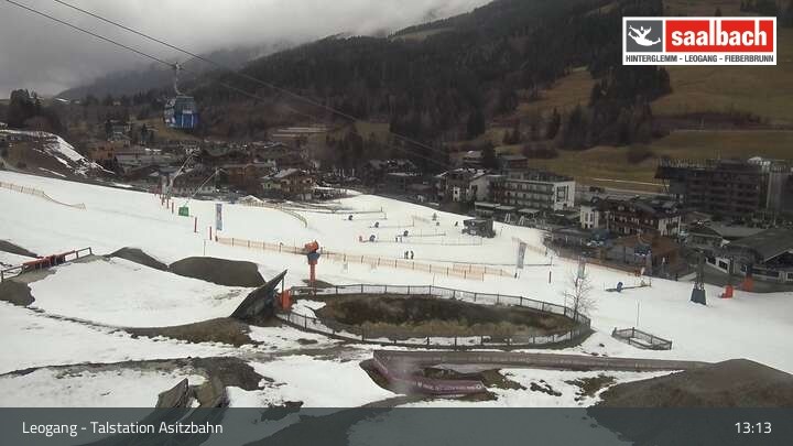 This webcam looks over the base area of Asitzbahn in Leogang.