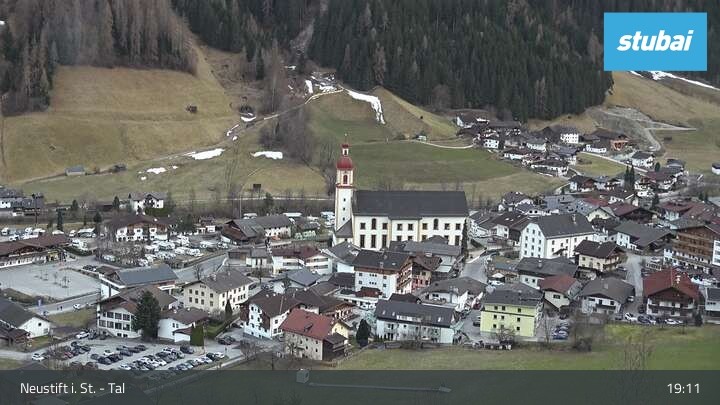 The webcam looks towards the village of Neustift im Stubaital (Stubai valley).