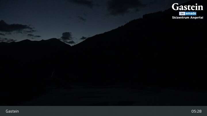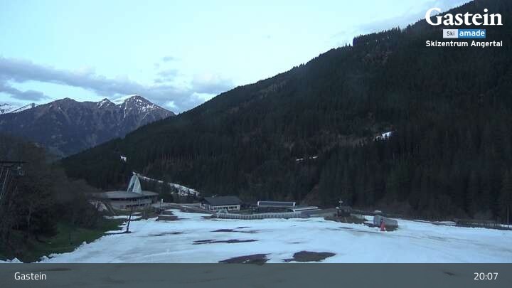 The webcam looks upon ski centre Angertal in the Gastein valley.