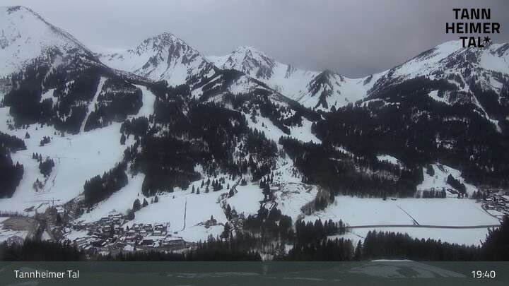 From Upper Halde in Zöblen, this webcam looks upon Tannheim Valley.