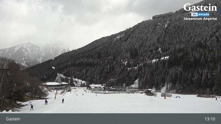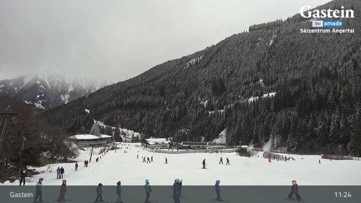 The webcam looks upon ski centre Angertal in the Gastein valley.