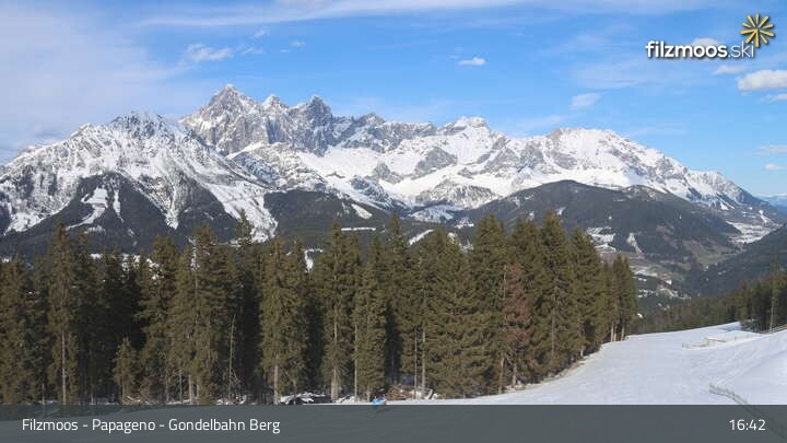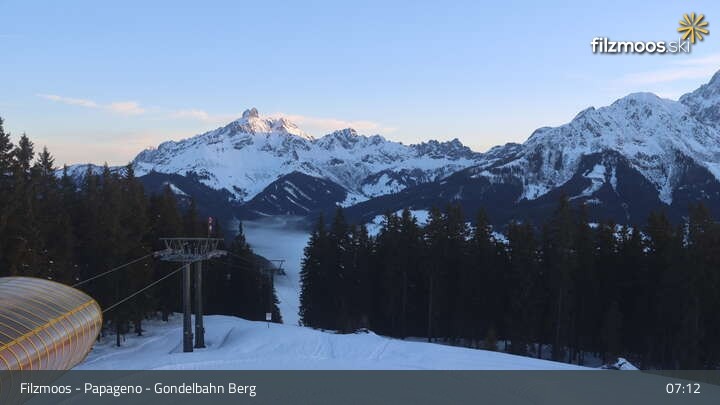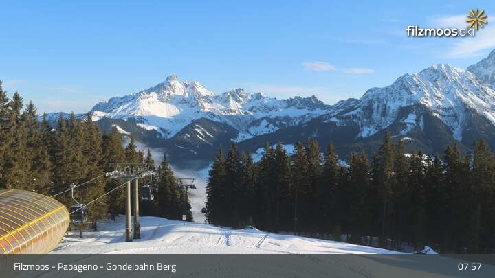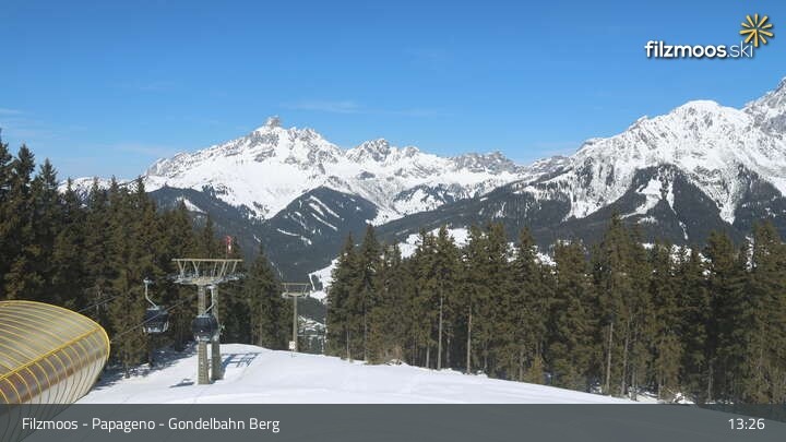 The webcam is located at the top station of the Papageno gondola in Filzmoos.