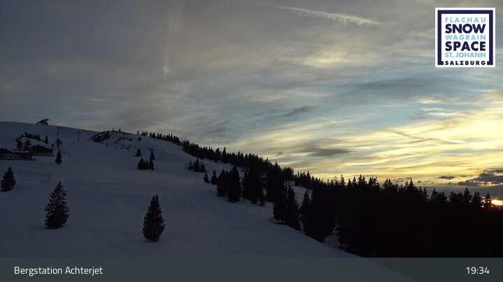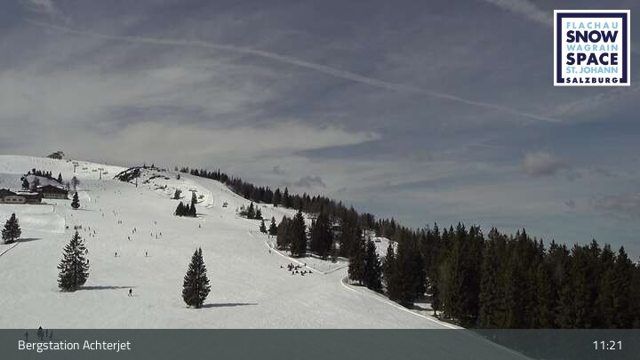View from the top station of Achter Jet in Flachau over the surrounting Alps.
