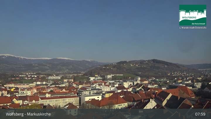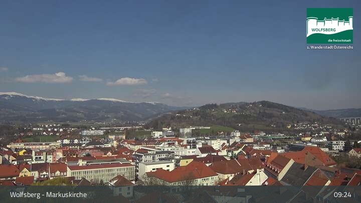 This webcam is located at church Markuskirche in Carinthian town Wolfsberg. It offers the view towards the village and the castle Wolfsberg.